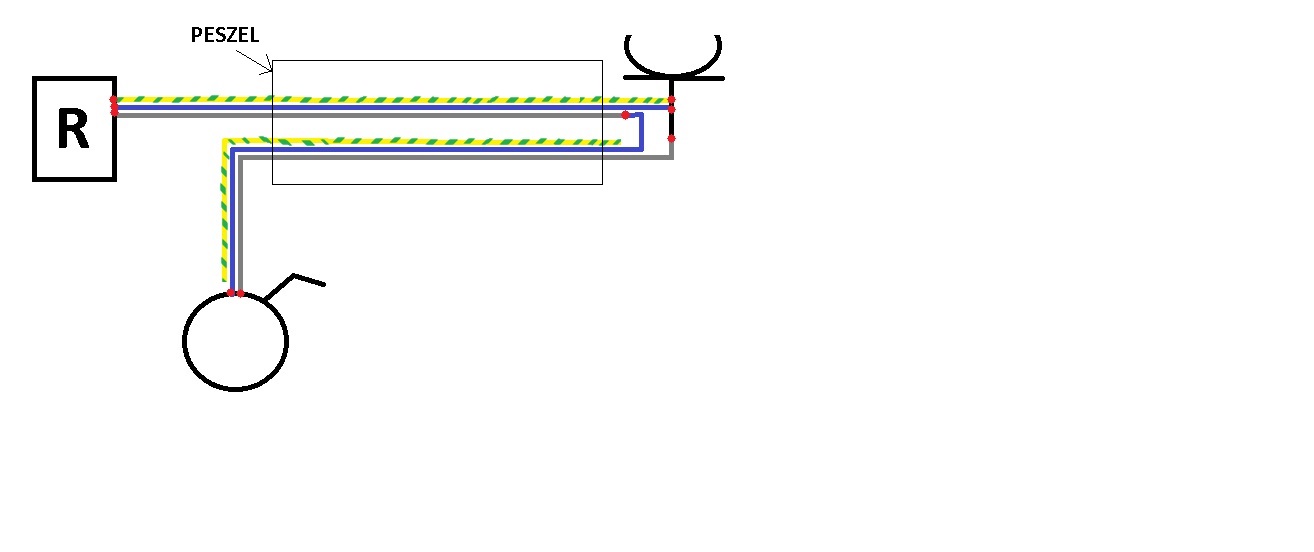 Chodzi o gniazdko do bojlera umieszczone w piwnicy. Chciałem żeby bojler był włączany z łazienki więc zrobiłem łącznik w łazience. Co się okazuje po podłączeniu tj. na rysunku: po załączeniu przycisku mam 230V a po wyłączeniu 120V. Instalacja jest nowa 3 żyłowa, Wspólna jej część idzie we wspólnym peszlu.