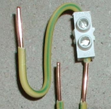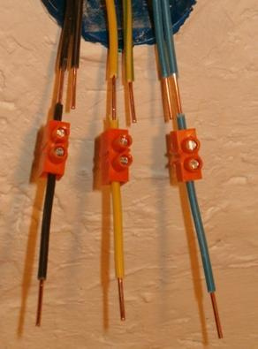 Odsłaniamy na odcinku ok 1 cm izolację z tych żył w połowie ich długości dla połączenia z końcami żył krótszego przewodu za pomocą złączek.