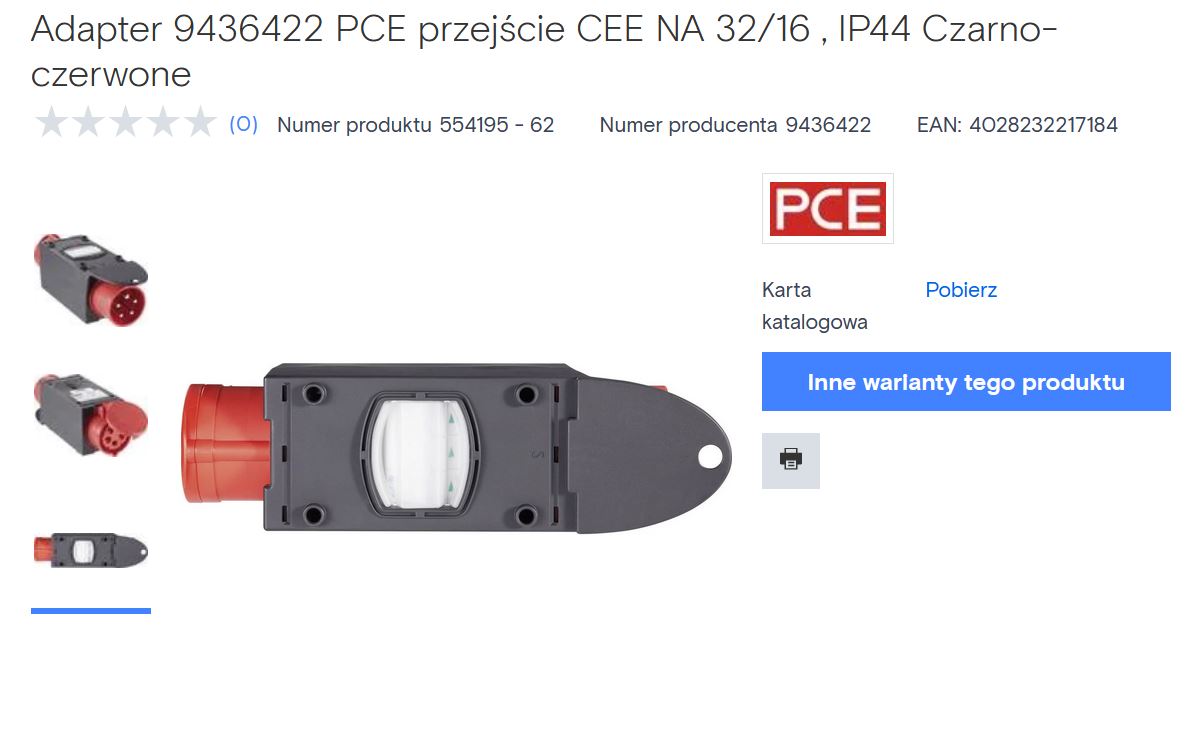 - połączenia torów N i PE (w domniemaniu z instalacji w układzie TN-S lub TT) w jeden tor PEN w adapterach: wtyk 400V/5st na gniazdo 400V/4st np: Adapter wt.32A/5st + gn.16A/4st (nr wyrobu 602) . Zgodnie z PN HD 60364-4-41 jest to czynność niedozwolona. Ponieważ nie znam układu połączeń w/w adaptera, więc może się mylę co do połączeń i w gnieździe 400V/4st zrezygnowano ze styku N co wydaje mi się też błędem .