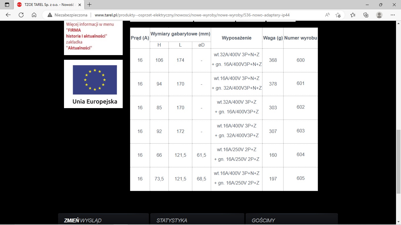 www.tarel.pl/produkty–osprzet-elektryczny/nowosci/nowe-wyroby/nowe-wyroby/536-nowo-adaptery-ip44