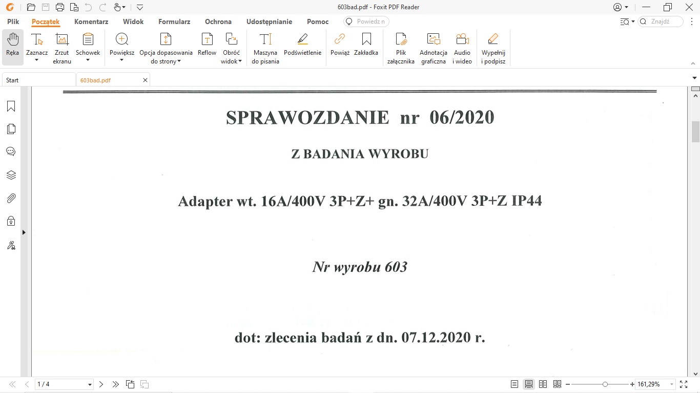 Jednak, jeżeli Pan pozwoli, chciałbym się jeszcze odnieść do adaptera (np. wyrób nr 600). Rozumiem, że prawnie spełniliście wszystkie formalne wymagania aby wyrób certyfikować, jednak trochę ubolewam nad faktem, iż Wasza firma wypuszcza na rynek produkt (nazwę go) niebezpieczny. Adapter jest ogólnodostępnym artykułem i w jego posiadanie może wejść każdy a w tym kompletny laik, który nie rozumie opisów na obudowie. Taka przejściówka jest idealnym, tanim rozwiązaniem dla kogoś, kto chce dostosować gniazdo 32A do wtyczki swojego urządzenia 16A, ale w/w osoby nie zastanowią się nawet przez chwilę nad wartością zastosowanych zabezpieczeń w instalacji.