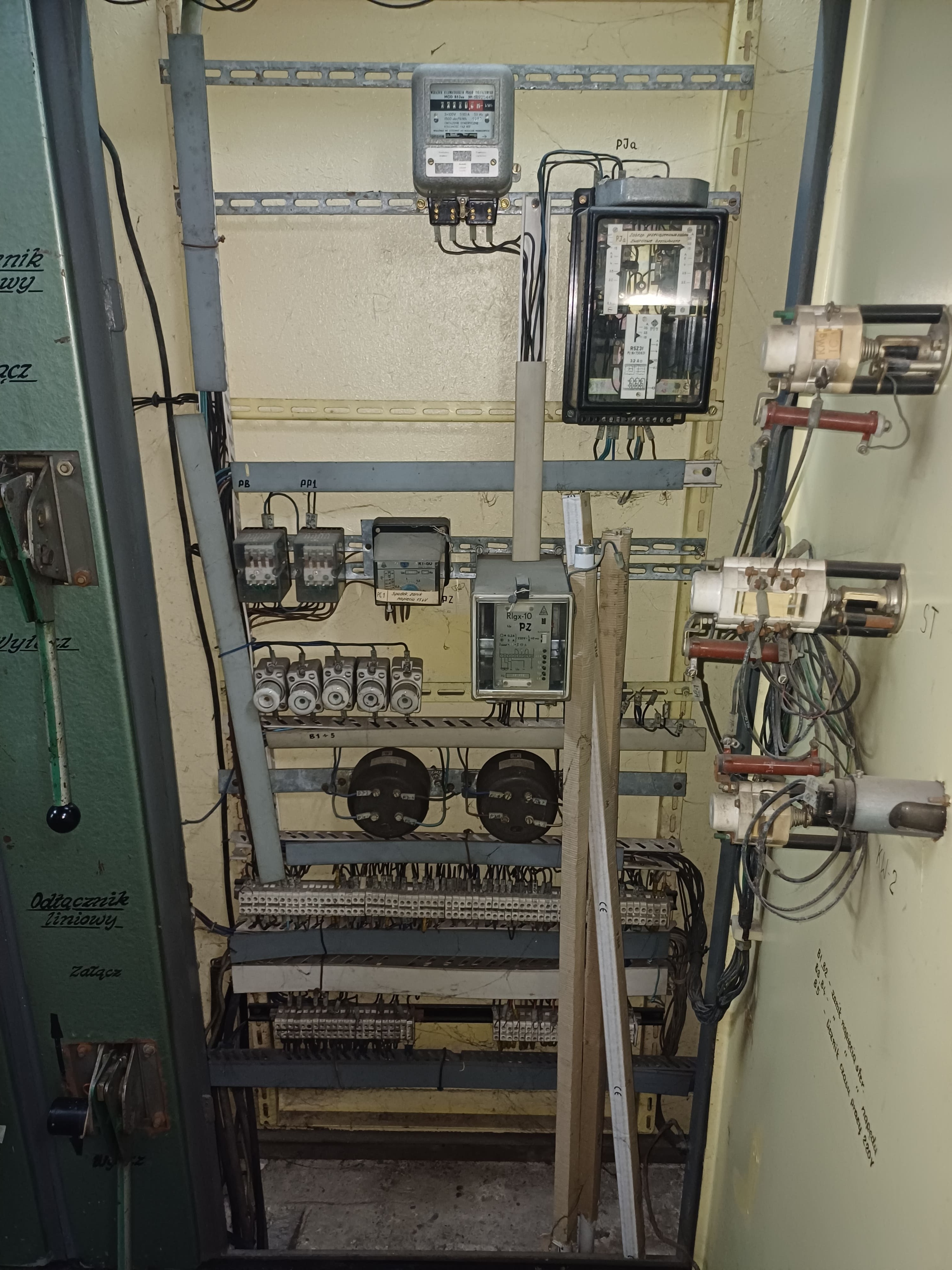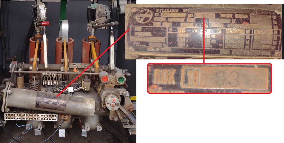 Wyłącznik zainstalowany w czynnej rozdzielni, niestety, trudno go nazwać “na chodzie” ponieważ kilka lat temu został odpięty odpływ (zlikwidowano urządzenie) i taki stan jest zachowany. Obsługa powiedziała, że wyłącznik sprawny był do końca.