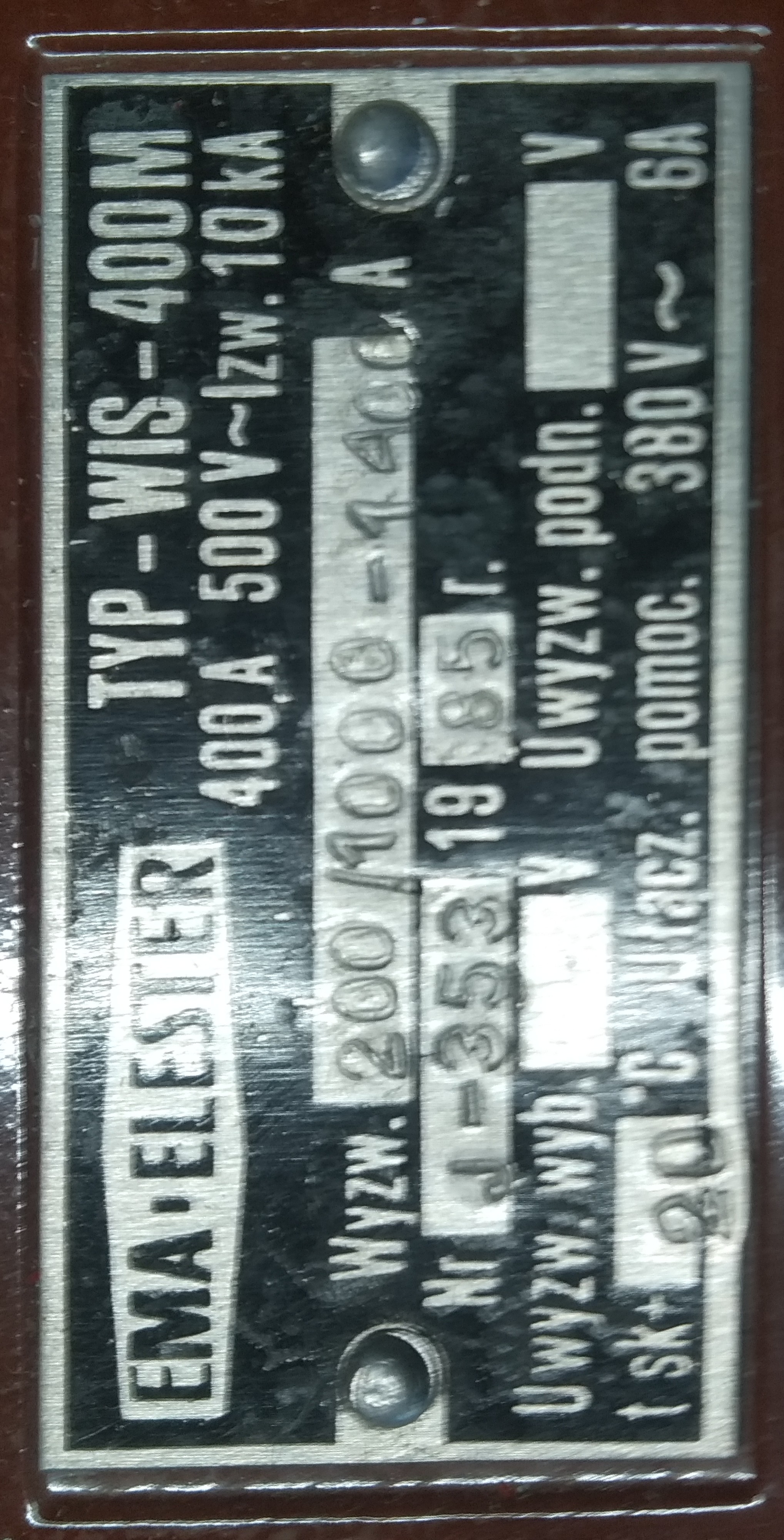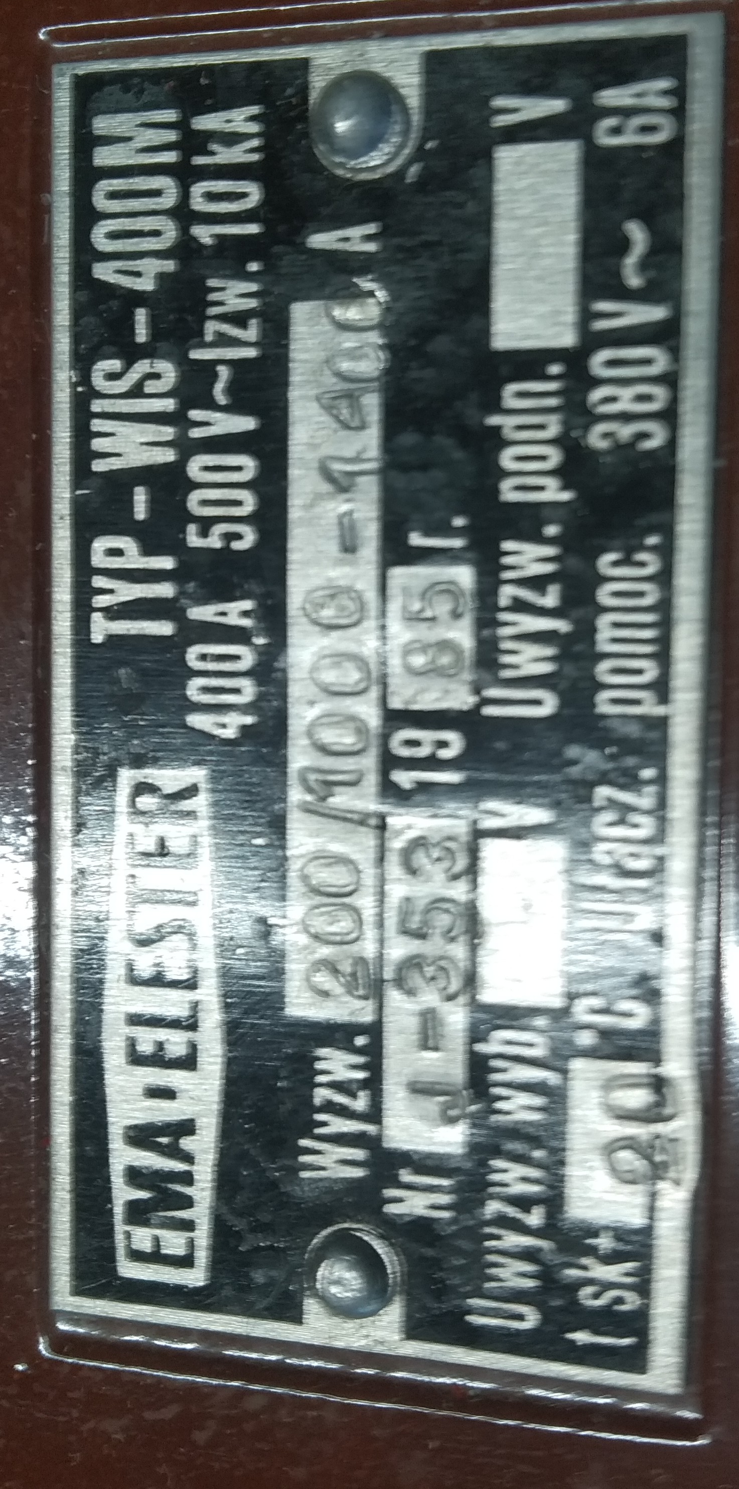 (na tabliczce nie wybito roku produkcji, ale studiując zamieszczony wyżej życiorys i tabliczki na obudowie można precyzujnie określić okres w jakim wyłącznik opuscił fabrykę).