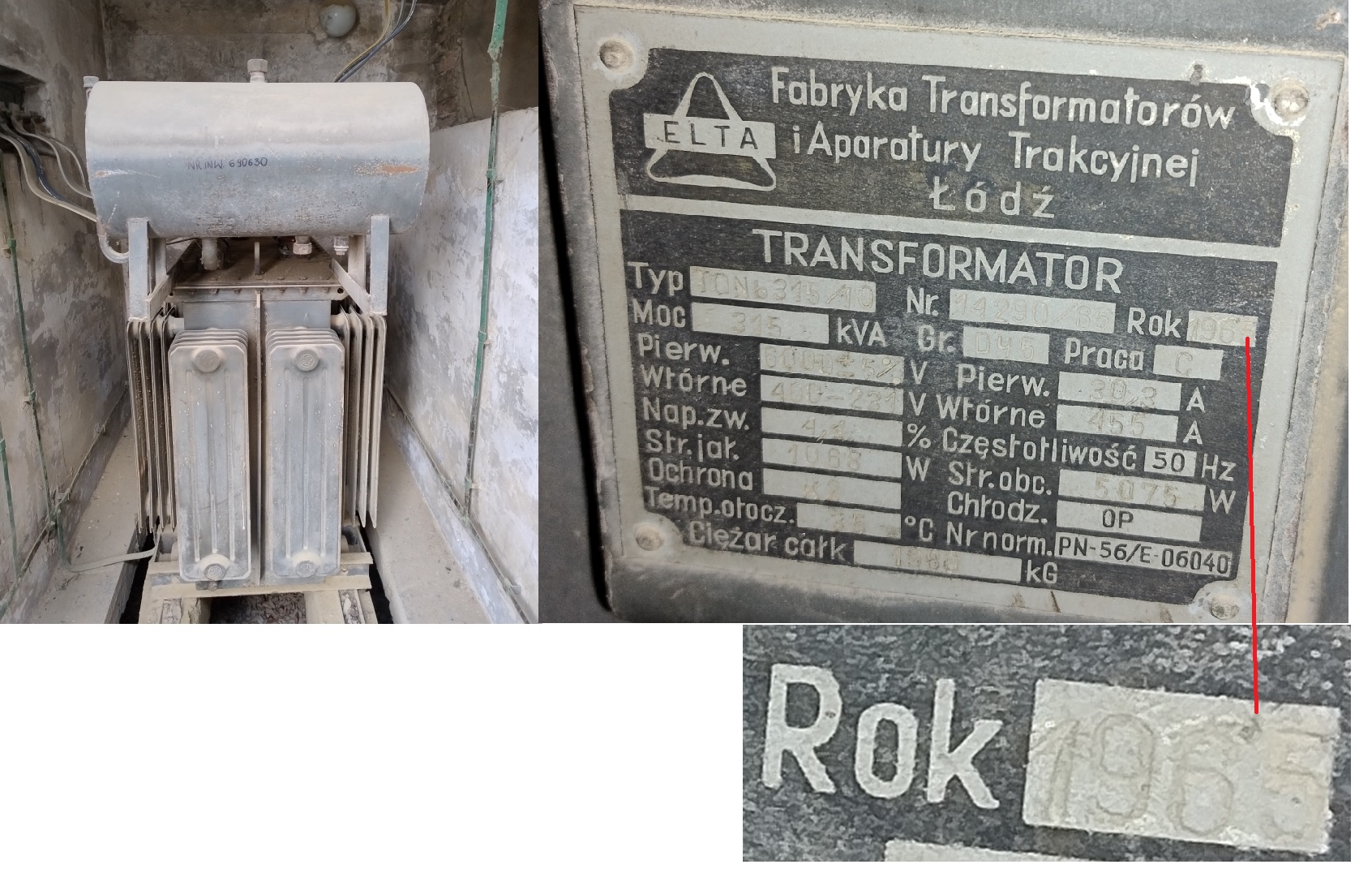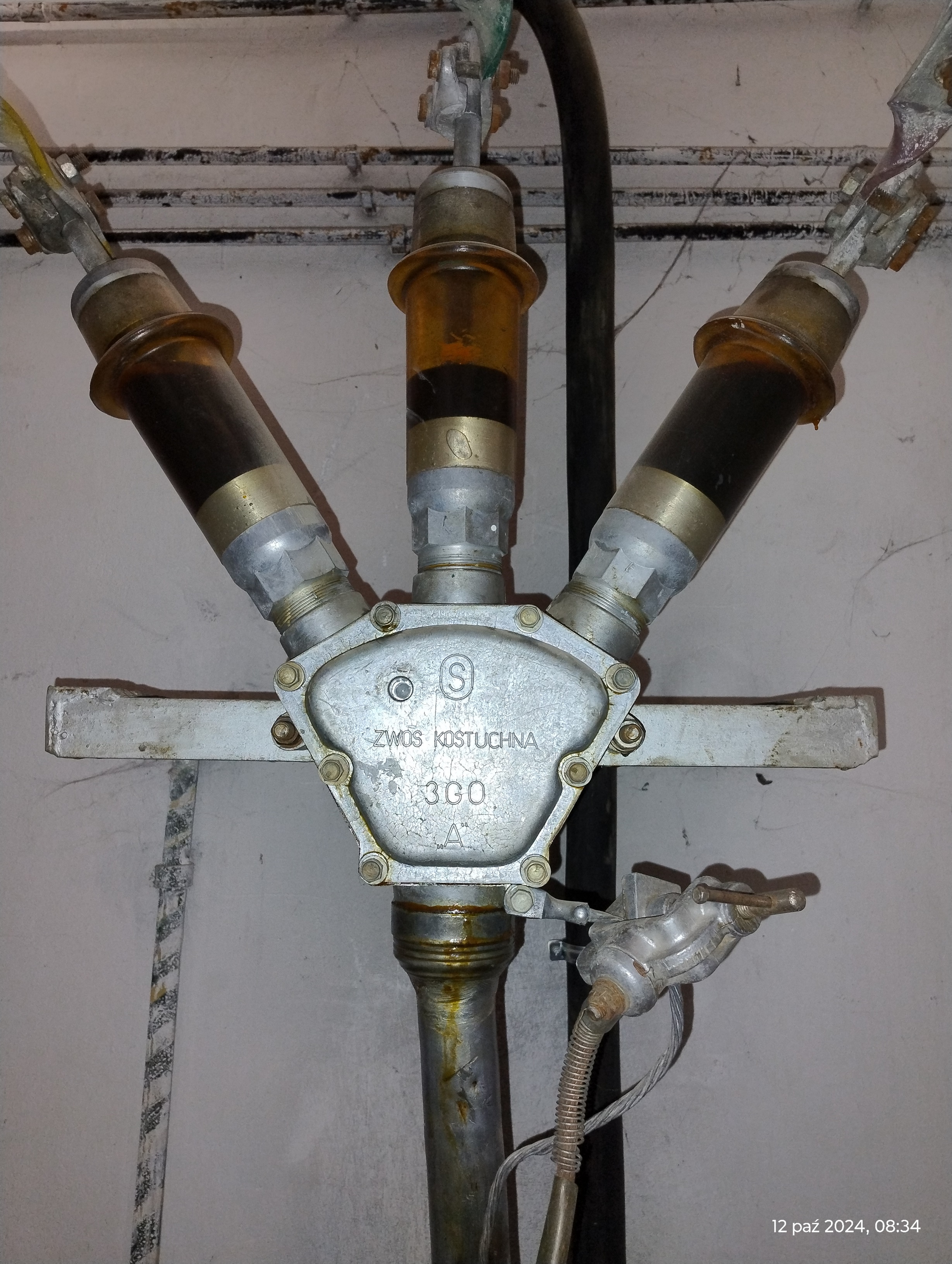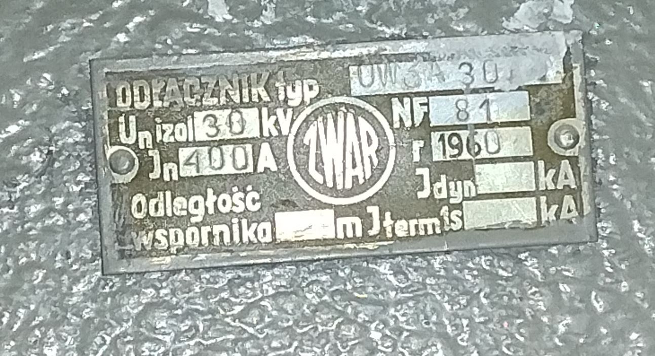 Wrzucę kolejną ciekawostkę … olejowa głowica kablowa, co prawda nie ma na niej daty produkcji, ale w tym samym polu 15kV jest odłącznik datowany na 1960 rok, co sugeruje wiek głowicy: