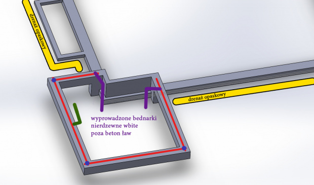 - Czy obecność drenażu opaskowego ma tutaj jakieś znaczenie? Podczas opadów deszczu opaska będzie zalana wodą, Rozumiem też że ułożona na spodzie bednarka nie musi mieć kontaktu ze zbrojeniem?