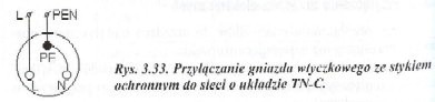 Wydanie drugie, poprawione i uzupełnione. Rys. 3.33. Przyłączanie gniazda wtyczkowego ze stykiem ochronnym do sieci o układzie TN-C. (-Strona 68).