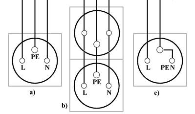 Rysunek 37.10. Podłączenie przewodów w pojedynczym gnieździe wtykowym c) (-strona 645).
