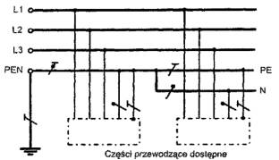 uziemienia w punkcie rozdziału PEN na PE i N.