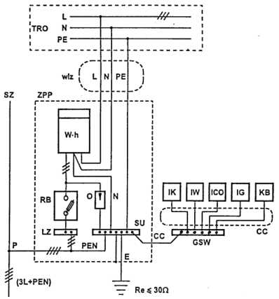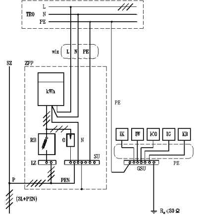GSU - główna szyna uziemiająca. GSW - główna szyna wyrównawcza.