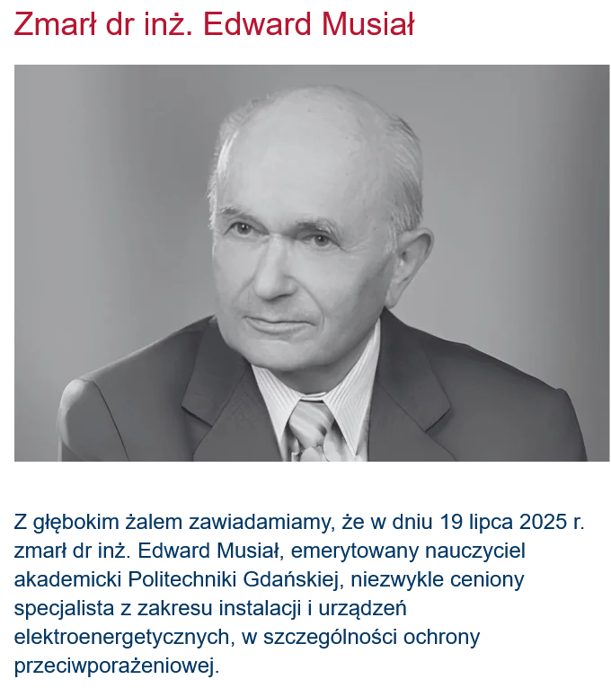 Z przykrością zawiadamiam, że zmarł doktor Musiał, nauczyciel i przewodnik nasz, elektryków :