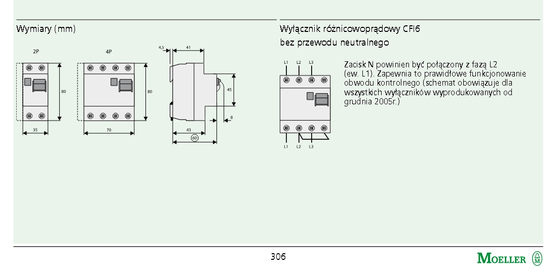 Ten schemat jest podany przez producenta dla wyłączników CFI6 wyprodukowanych od grudnia 2005r.