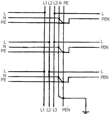 Na rysunku już więcej nie można było pokręcić. Panowie, jest to w rzeczywistości sięc TN-C z lokalnymi odejściami w TN-C-S. I wcale nie wiadomo po co są dwa piony: