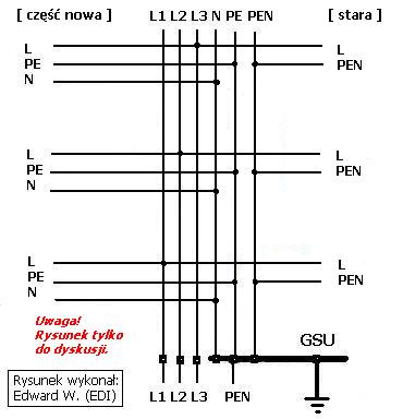 Było proste wyjście. Należało pociągnąć jeszcze jeden pion PEN i wszystko byłoby zgodne z zasadami sztuki. PE byłby bezprądowy.