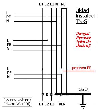 Kolego ZAX, w/w rys. pochodzi z normy IEC 364 gdyż w PN-IEC 60364 opartej na normie IEC 364, normotwórcy rysunki te poskracali. Norma ta nie przewiduje nie konserwowanych lub złych instalacji i dlatego nic w niej pisze o dziesiątkach uziemień roboczych oraz nie opisuje zjawiska przerwy PEN. Proszę sobie porównać obydwie normy, przedstawione w nich rysunki układów sieci, trochę je poczytać a na koniec zwracać mi uwagę.