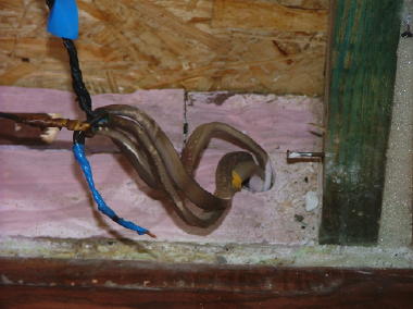 Przy przejściu przez drewniane elementy konstrukcyjne trzeba stosować przelotki. Należy unikać przewiercania belek, gdyż utrudnia to montaż instalacji i naprawy; lepsze są “półokrągłe wybrania” na brzegach krokwi i belek - przewody są wtedy podwieszane, a nie przeplatane przez otwór.