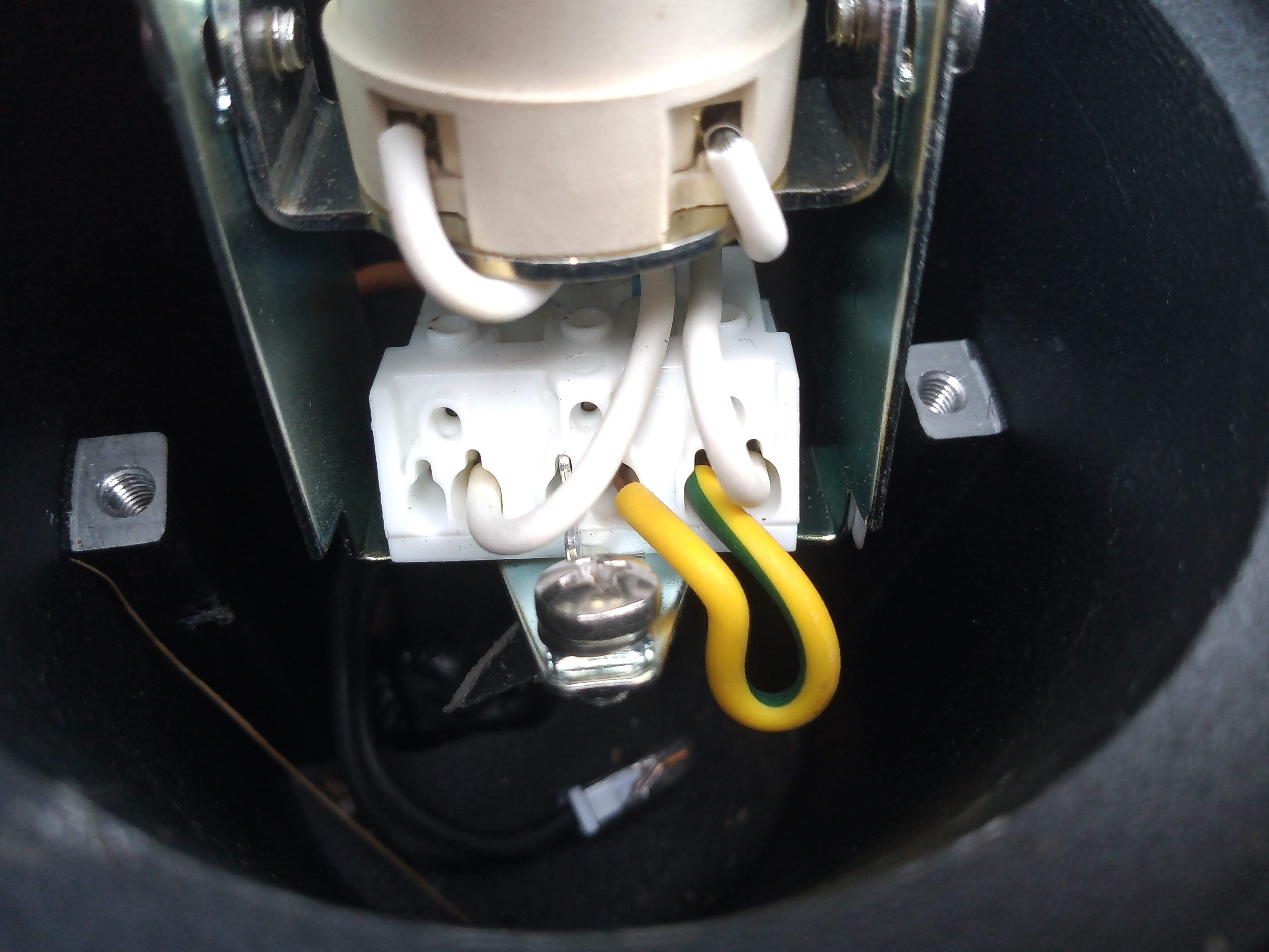 Na drugim obwodzie - oprawy wpuszczone w betonową nawierzchnię - nic nie działa. Zidentyfikowałem jedną oprawę, w której połączenia iskrzyły, a przy próbie jej wyjęcia okazało się że w środku zalana jest jakąś masa bitumiczną - tak jakby ktoś chciał doszczelnić oprawę - być może po jakimnś uszkodzeniu. Podejrzewam, że ta masa doprowadziła do korozji izolacji na przewodach i w efekcie iskrzenia. Oprawę usunąłem, w jej miejsce doraźnie zainstalowałem puszkę hermetyczną i zmostkowałem połączenia (żeby kolejne oprawy mogły działać). Niestety nie działają, więc zdemontowałem kolejną oprawę w tym obwodzie (nie zalaną masą bitumiczną tym razem) i odkryłem, że pomimo ułożenia kabla 5x1.5mm2, instalator wykorzystał tylko przewody L1 i N, a PE oprawy zmostkował do N oprawy (zdjęcie).