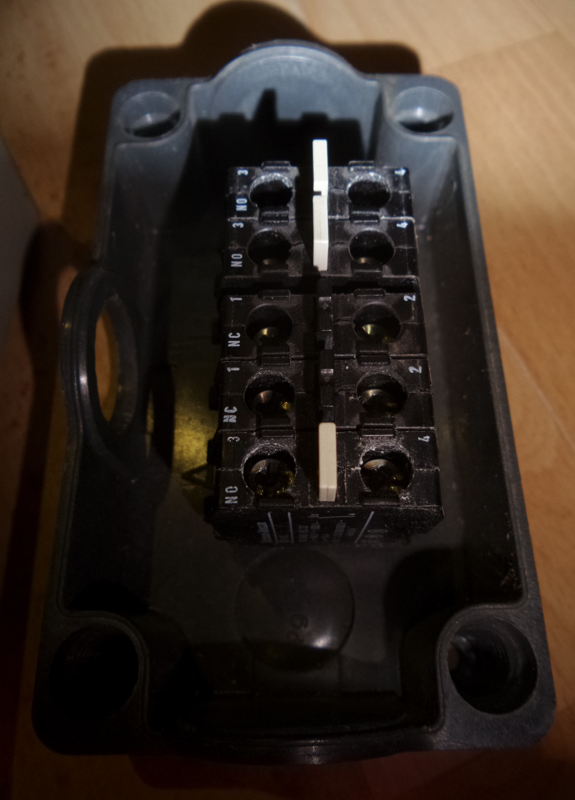 Zazwyczaj spotykałem się z włącznikami, które się przekręcało. Zastanawiam się jednak jak podłączyć ten widoczny na zdjęciach.