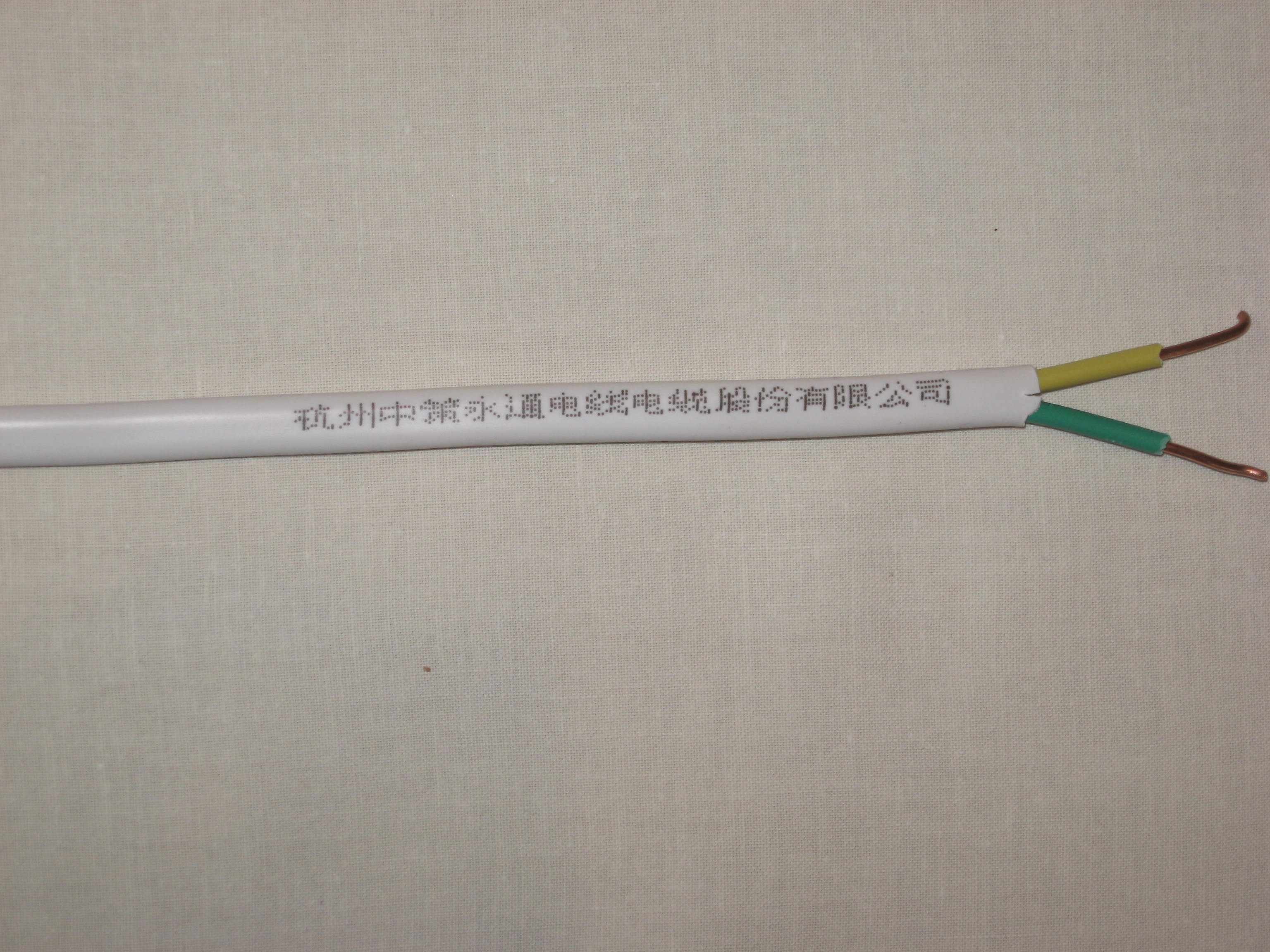 Po wyglądzie izolacji sądząc, odpowiednik naszego YDY, dwużyłowy, prawdopodobnie miedziany ale trzeba sprawdzić jakimś nożem czy to nie jest przypadkiem miedziowane aluminium. Przekrój sobie zmierzysz.