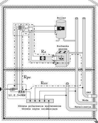 Teoretycznie prąd przepływający przez PEN powinien spełniać takie zadanie aby przez rury wodne i gazowe przepływały prądy rzędu miliamperów gdyż ich rolą powinno być spełnienie wyrównania potencjałów.