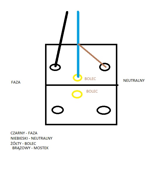 Witam ponownie. Mam u siebie układ sieci TN-C. Sprawdzałem w Energetyce. Zresztą jak zauważyłem jedno gniazdko mam zmostkowane już (lodówka). Przymierzam się do wymiany gniazdka jednokomorowego bez bolca na dwukomorowe z bolcem (mostkowane)- mam teraz do gniazdka bez bolca podłączony przez listwę przeciwprzepięciową nowy telewizor LCD i komputer. Gniazdko nowe kupiłem , jutro robię wymianę. Listwa przeciwprzepięciowa(z bezpiecznikiem) nic mi nie daje jak nie mam gniazdka z bolcem. Mostkowanie robię według tego schematu dla porządku: