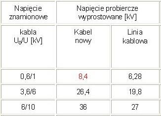 -Jak się ma napięcie pomiarowe stałe, dla kabli 0,6/1 kV induktorem 2,5 kV do napięcia wyprostowanego próby dla linii kablowej: 6,28 kV ?