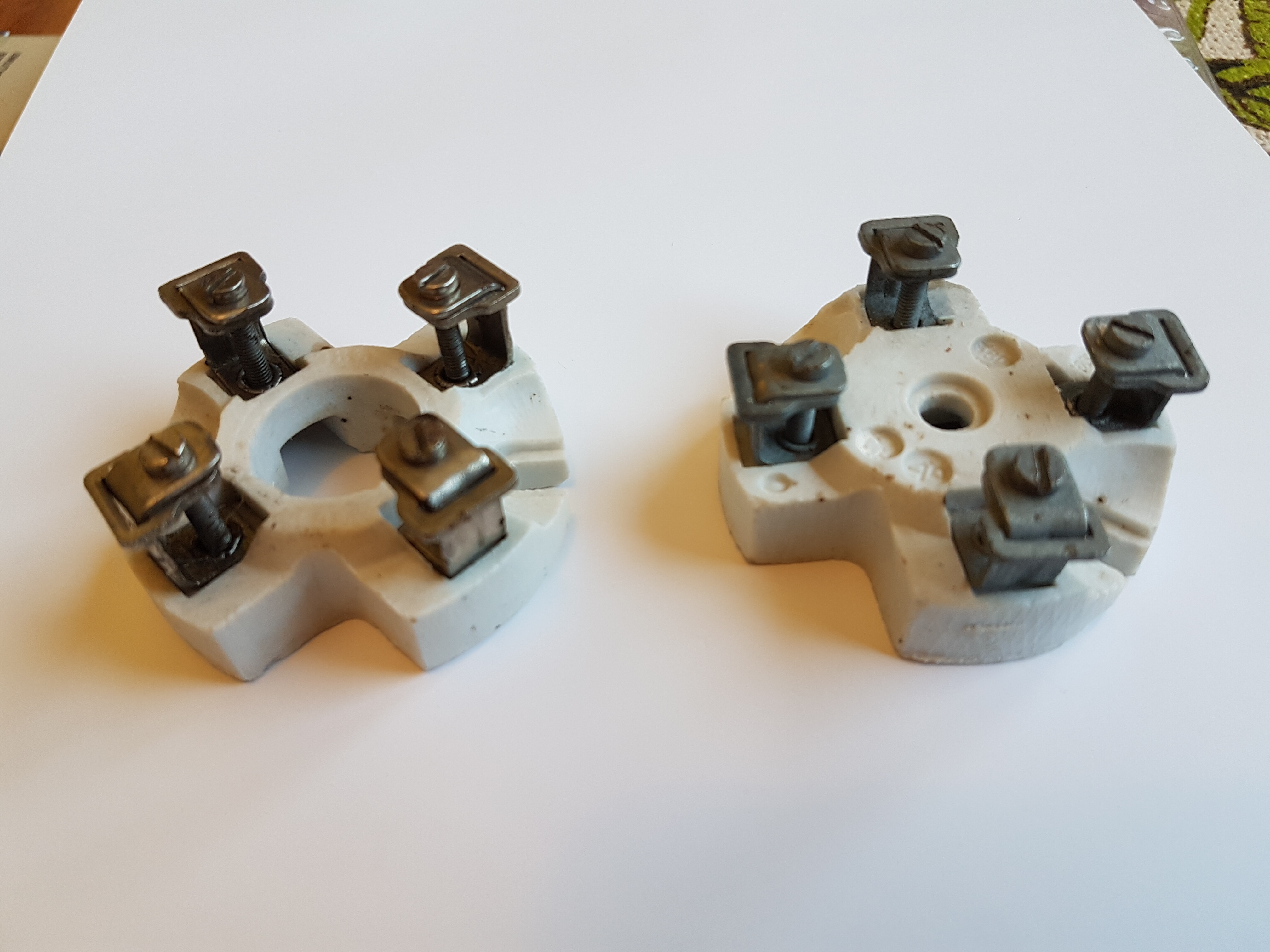 Jedna puszka, dwie technologie łączeniowe. Na spodzie puszki porcelanowy pierścień łączeniowy (jako ciekawostka historyczna z przed 60 lat dla młodszych kolegów