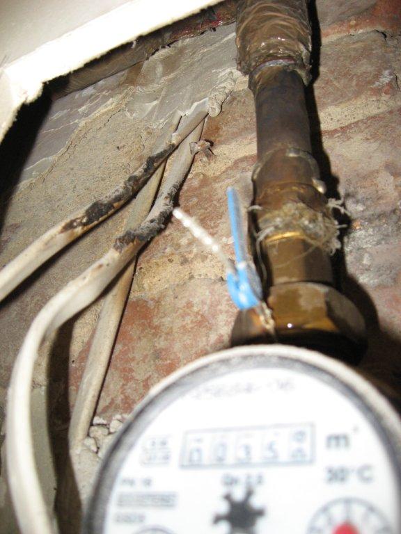 Na fotografii widać brak wyobraźni, podczas wykonywania lutowania instalacji wodnej. Wystarczyło osłonić przewody elektryczne od płomienia palnika. (Jakość wykonania połączenia lutowanego też ma wiele do życzenia).