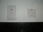 Po prawej stronie wyłącznik bojlera. Jego lewy klawisz (opisany ON-OFF) to niejako “wyłącznik główny” zaś prawy pozwala na dokonanie wyboru grzałki a faktycznie ilości grzanej wody.