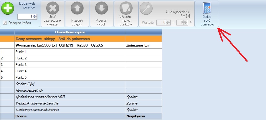 Problem polega na tym, że ten program (albo tylko ta wersja, nie wiem czy były aktualizacje) oblicza liczbę punktów pomiarowych na podstawie starej normy PN-84 E-02033. Ten sposób obliczania obowiązywał do grudnia 2012 r.