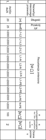 A co do rezystancji izolacji to odcinek 20m powinien mieć(biorąc pod uwagę dane producenta kabla”),nie mniej jak 50 GOhm.