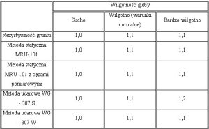O ile wiem istnieje w formie publikacji {materiały Politechniki Gdańskiej), bardziej rozbudowana tabela wspólczynnika w zależności od wartości % wilgotności gruntu wraz z wykresem.