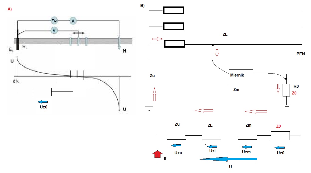 Rezystancja uziemienia jest również składową pętli zwarcia w układzie TT. Pozostałe składowe to dla pomiaru rezystancji uziemienia (np. odgromówki) stanowią błąd metody ( wg uproszczonego rysunku kolegi Rosol - tak na marginesie: źle oznaczone spadki napięć). Producenci dopuszczają więc mierniki pętli do pomiaru uziemienia z zastrzeżeniem uwzględnienia dodatniego błędu wyniku - nie można ich wykluczać jako możliwości pomiaru rez. uziemienia.