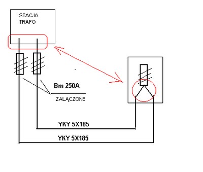 Wg zamieszczonego schematu kable zasilane są spod osobnych zabezpieczeń, natomiast podłaczone są już pod jedno wspólne zabezpieczenie… W przypadku zwarcia prąd zwarciowy popłynie przez oba kable…