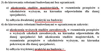 "3. Uzyskanie uprawnień budowlanych w specjalnościach, o których mowa w ust. 1, wymaga:
