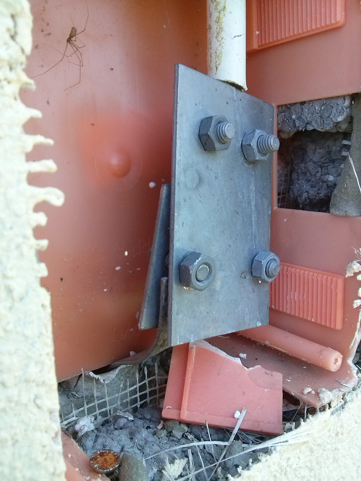 - " z obserwacji" - trudne do zrealizowania złącza kontrolne - przeważnie powodują defekty tynku (naprężenia drutu i bednarki są silniejsze od styropianu, często powodują pęknięcia tynku wokół puszki), a ich otwieranie po kilku latach eksploatacji , powoduje czasem kolejne zniszczenia.