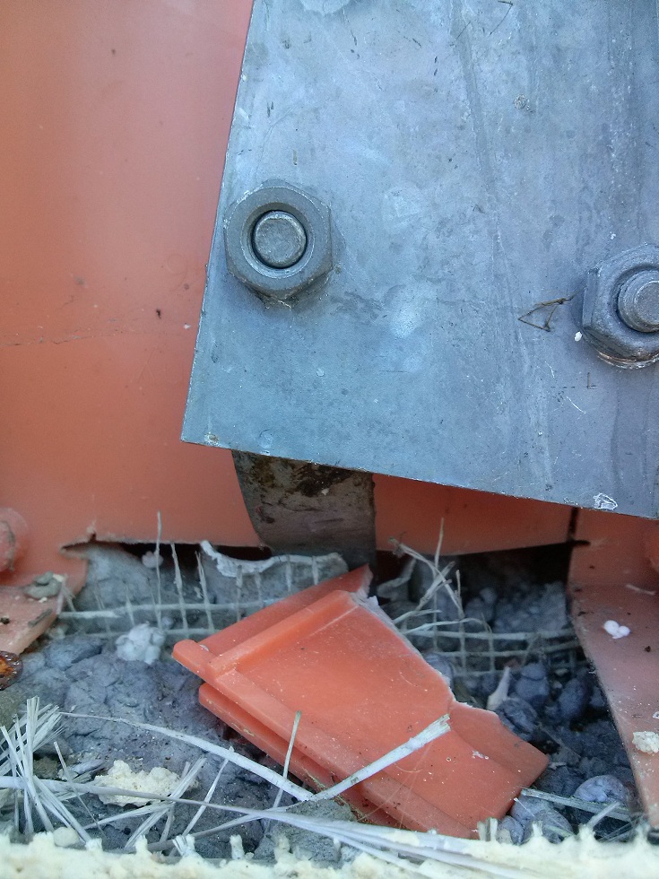 Dodam jeszcze do tego wątku zobrazowany problem ze złączem kontrolnym, takich jak to ze zdjęcia jest mnóstwo. Proszę zwrócić uwagę co dzieje się, gdy budowlańcy przesuną rurę z drutem o zaledwie 2-3 cm od osi bednarki! Ponadto skieruje pytanie do zwolenników chowania drutu w styropian: jak odnieść konstrukcję złącz kontrolnych , wykonanych jak na zdjęciu, do zdania z normy PN-EN 62305-3 opisującego zaciski probiercze (5.3.6):