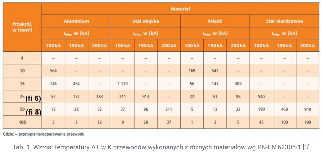 Widzę , że kol. dosat pije do mojego postu, więc kolego odczytaj mądre tabele dla drutu fi 6 (jakich nie mało na starszych obiektach) i przełóż to na kolejne po sobie 2, 3 wyładowania . Dodam, że przyrost w tabelach obliczony jest dla 100kA , rzeczywisty prąd piorunowy może (nie musi) być większy. Do czerwoności wystarczy 600 stopni. Oczywiście dowodów na to nie przedstawie , fotografii tym bardziej , ale fakt taki został zaobserwowany na drucie fi 6 na starym kominie.