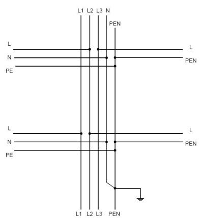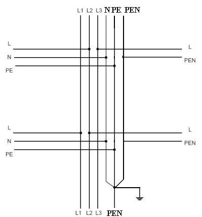 E.Musiał (a teraz już i SEP) zalecają łączyć PEN odbiorów z przewodem w w.l.z., który do czasu całkowitej modernizacji instalacji w budynku jest przewodem PEN, czyli mamy układ 3xL+N+PEN (tak jak na pierwszym rysunku melona). Ciekawi mnie dlaczego nie: 3xL+PEN+PE?