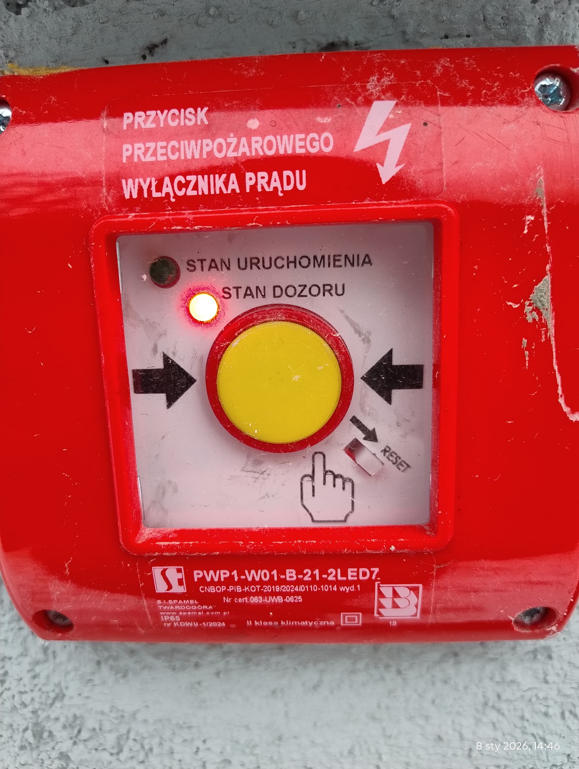 Na zdjęciu załączam napotkany ostatnio element uruchamiający układ przeciwpożarowego wyłącznika prądu. Zastanowił mnie suwak “reset” - czy to jakiś kolejny wymóg prawny, czy fanaberia producenta.