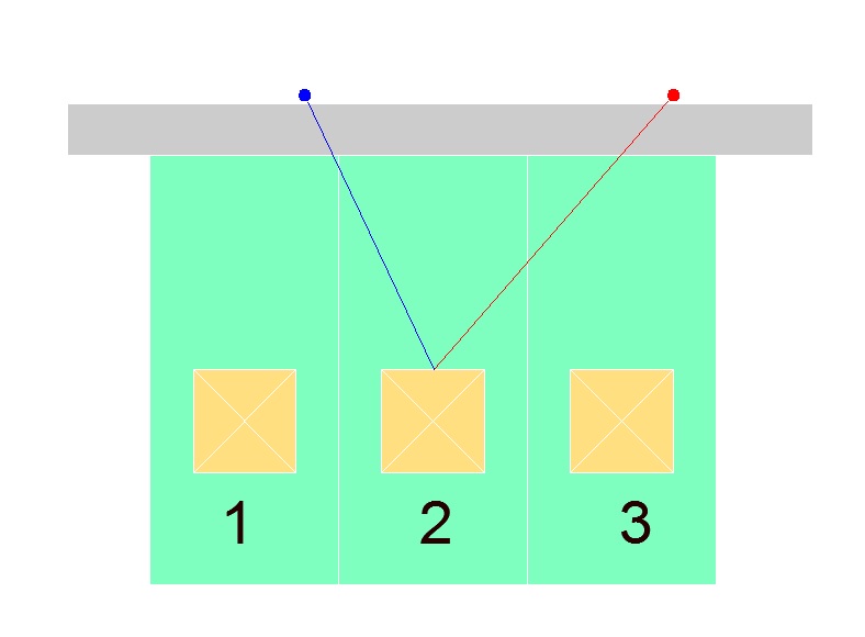 W pobliżu jest jeszcze słup z którego sąsiadka również może puścić przyłącze (niebieski), przy czym kabel przechodziłby nad działką jej sąsiada po lewej (nr 1) ale w minimalnym stopniu