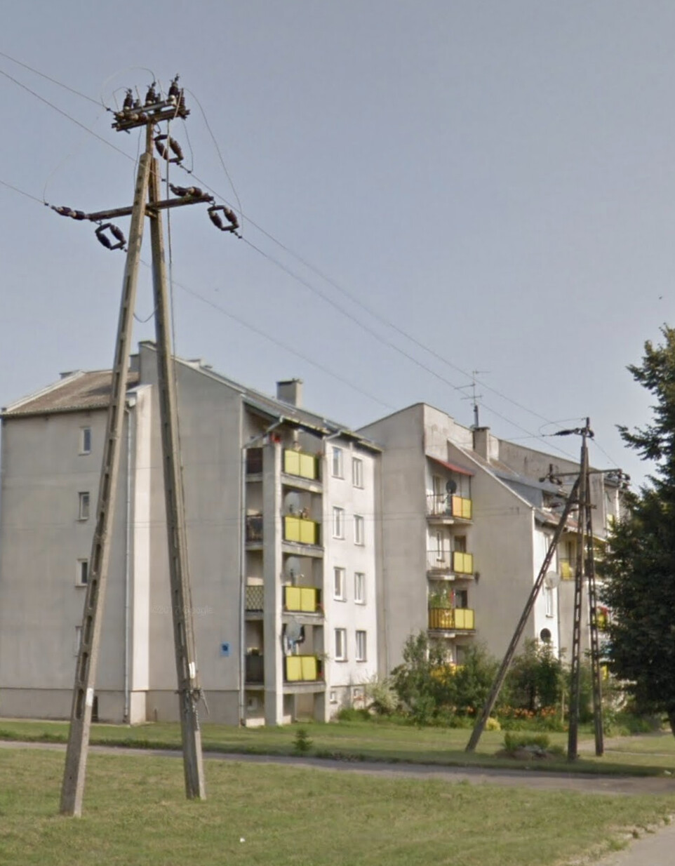 Tam u was jest jeszcze taka ciekawostka, stacja transformatorowa na słupie bramowym z żerdzi betonowych