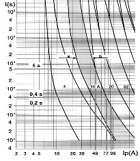 “Charakterystyka t-I dla czasu przedłukowego (wykres 25.1.5.2, linia “a”) ma szczególne zastosowanie przy doborze selektywności zabezpieczeń. Natomiast charakterystyka t-I dla czasu wyłączenia (wykres 25.1.5.2, linia “b”) ma zastosowanie przy doborze zabezpieczeń przed przetężeniem i zwarciem oraz w celu ochrony przed dotykiem pośrednim przez zastosowanie szybkiego wyłączenia prądu.