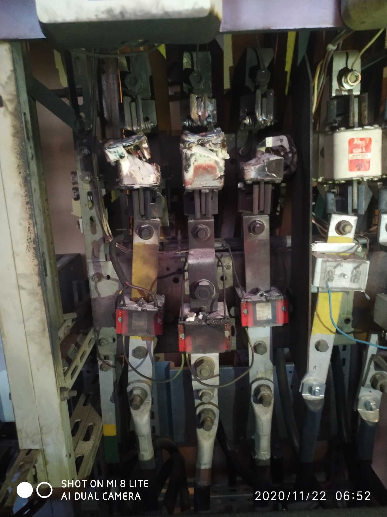 Skutkiem zwarcia międzyfazowego są przepalone bezpieczniki lub zadziałanie wyłącznika. To co widać na fotkach to dla mnie niezrozumiałe zjawisko. Autor pisze, że nie jest to wygrzana do bólu rura ochronna.