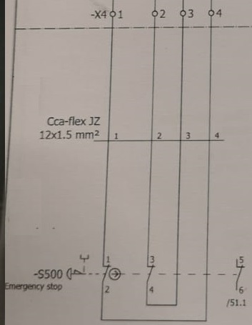 przewody 1,2,3,4 do nc1 2 nc1 2. 5 i 6 zakładam że do x1 i x2 jednak pewnie się mylę. Miał ktoś do czynienia z takim wyłącznikiem awaryjnym?