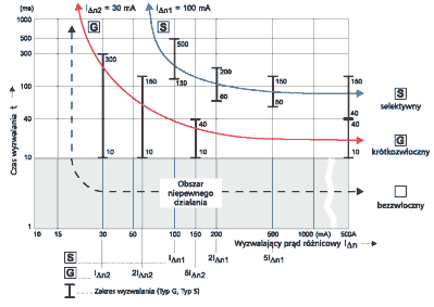 Natomiast wyłącznik selektywny montujemy na początku instalacji (przed wyłącznikiem zwykłym). Ma on zadziałać jeśli prąd upływowy wystąpi przed wyłącznikiem zwykłym, lub w wypadku jego awarii. Innymi słowy zadziałanie nastąpi ze zwłoką czasową.