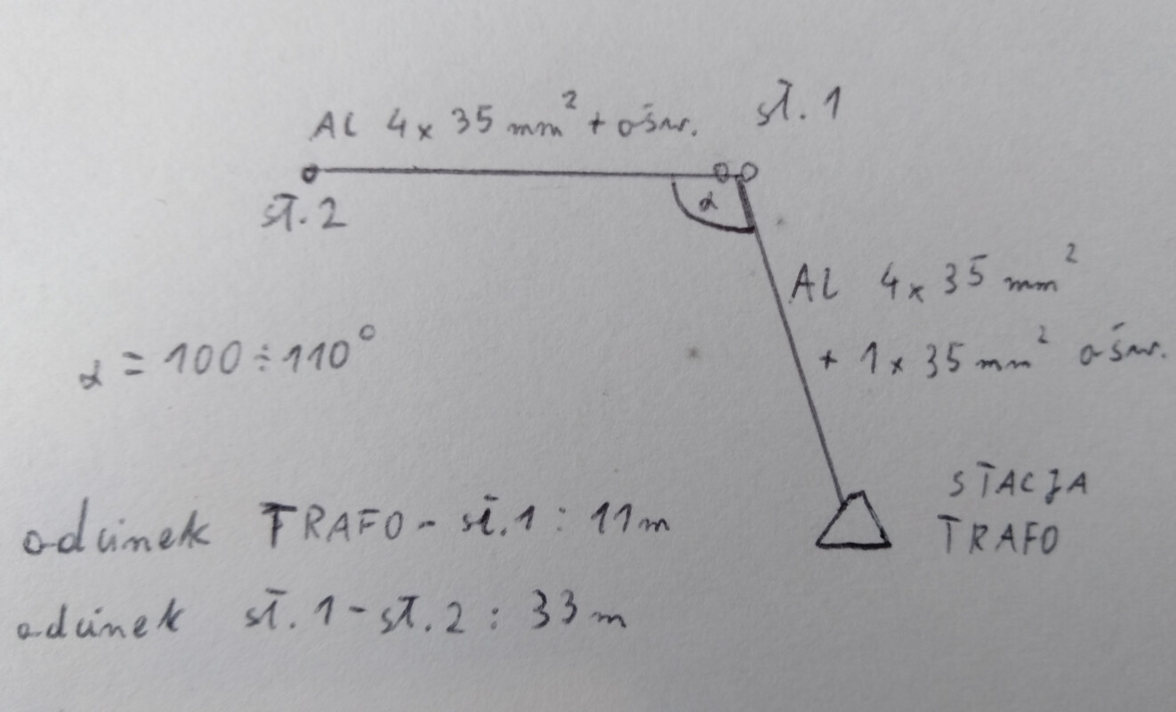 Wymieniany ma być odcinek o długości 11m od stacji trafo do sł.1 na przewód 4x70 + 2x35.