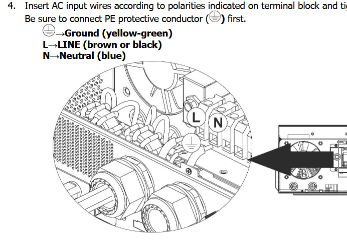 Falownik to Easun SMW 11KW, jednofazowy. Nie widzę, aby instrukcja mówiła wprost jaki typ sieci jest dopuszczalny. Natomiast instrukcja jasno mówi, że trzeba doprowadzić kabel PE do złącz AC Input i AC output.